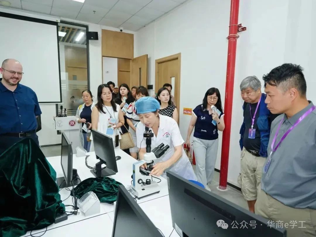 7月13日,参访团重点考察了华商健康医学院实验楼及华商模拟医院,全面了解了华商在医学教育领域的先进实验设施和高度仿真的模拟临床教学环境;走访了超火游动漫游戏工作坊、华商桃花岛电商中心以及华商中手游神绘游戏动漫工作坊等多个产教融合实践基地。这些实践基地集中展示了华商在动漫游戏设计开发、电子商务运营管理及数字娱乐技术应用方面的最新教学与科研成果。参访团对华商积极引入行业前沿技术、着力打造沉浸式实践教学环境的办学理念和显著成效表示充分肯定。