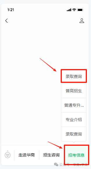 查询点击【招考信息】-【录取查询】;输入个人信息点击查询即可