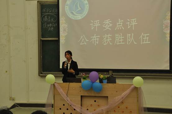 辩论赛总决赛在双方辩手激烈的唇战中落下帷幕。在第一场辩论赛结束后,由评委院辩论队队长黄秋霞对本次比赛作出点评。黄秋霞队长首先肯定了院勤工助学服务社的工作,她十分感谢院勤工助学服务社工作人员在这一个多月里的努力,同时感谢她们为热爱辩论的同学提供一个交流的平台。随后她指出判断一场辩论赛的成功与否,不是各位辩手说的有多好,而是看各位辩手说错了多少。