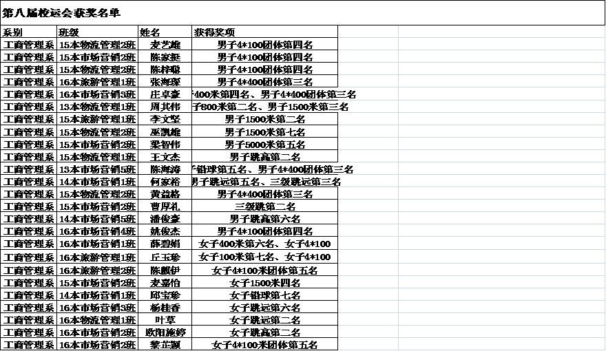 工商管理系校运会方阵加分名单