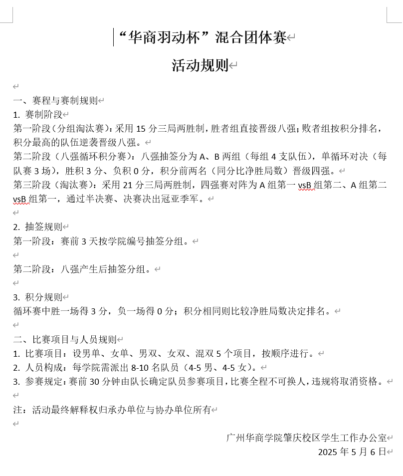 2. 各学院需配合赛事组织方完成抽签、报名等流程,及时关注赛程通知。