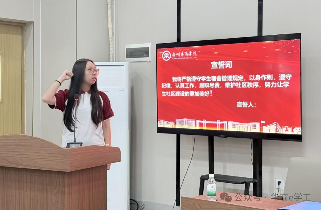 楼层长代表黄楚茵带领全体受聘楼层长庄严宣誓,铮铮誓言彰显了青年学子的责任与担当。