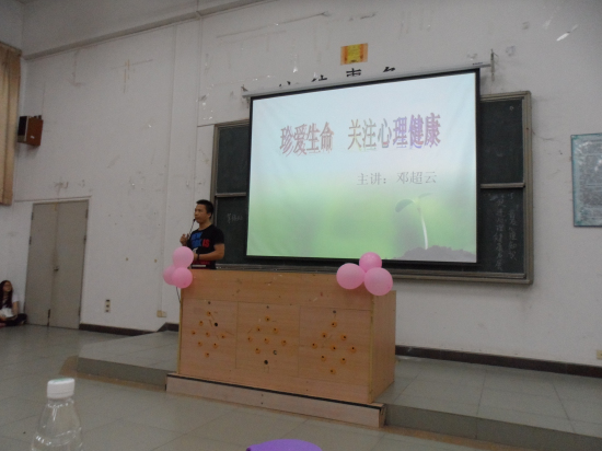 2014年4月15日晚7:30,大学生心理健康文化讲座在华商学院励志楼A108成功举办。主讲教师邓超云以“珍爱生命,关注心理健康”为主题展开了一场丰富而具有启发性的讲座。