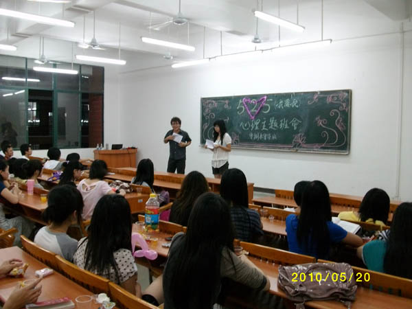 应心理健康中心的号召,学院各班级积极进行了心理健康知识的宣传教育,并且开展了形式多样的心理健康活动,其中表现突出的有:09本会10班;09本会4班;09专会5班;08本会7班班;09商务英语2班;09商务英语1班;09信管1班;09物本2班;09商务英语4班;09统计班。
