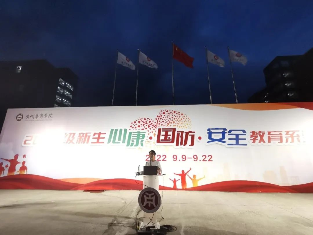 202299日晚上18:50,我校在四会校区国旗广场下举行了2022级新生心理健康教育主题讲座——新起点,从出发。校长助理、学生处处长许娜主持本次新生心理健康教育主题讲座。许娜处长为新生们介绍了本次讲座的主讲老师——赵倞老师。赵倞老师是广东省心理咨询师协会会员,高级心理咨询师,高级家庭教育指导师。