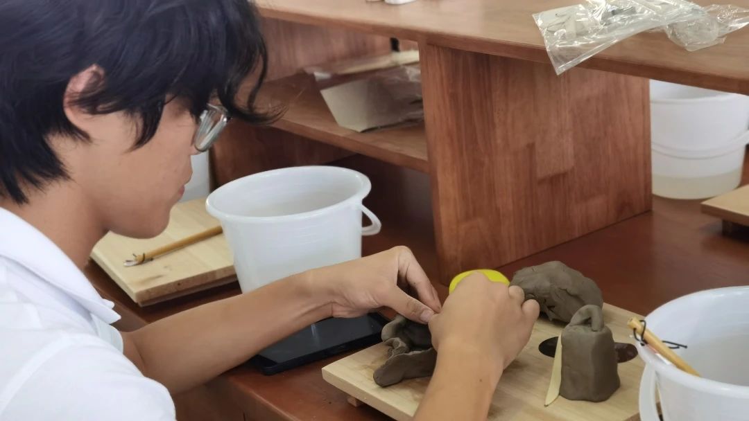 接下来,便轮到同学们大显身手了。大家纷纷领取陶泥,开始尝试创作,在郭老师和其他指导老师的悉心指导下,一件件带着学生创意的陶艺作品慢慢成型。期间,有校领导前来参观,驻足欣赏同学们的创作,肯定活动对非遗传承与实践育人的意义,现场氛围热烈又温馨。