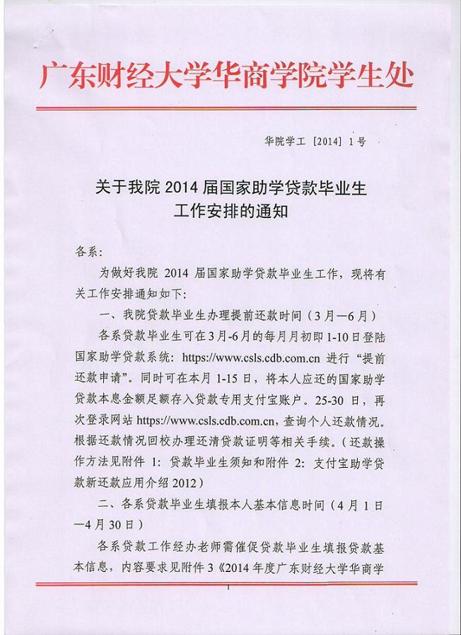 关于我院2014届国家助学贷款毕业生工作安排的通知