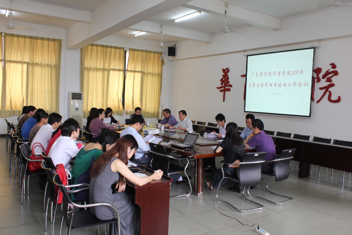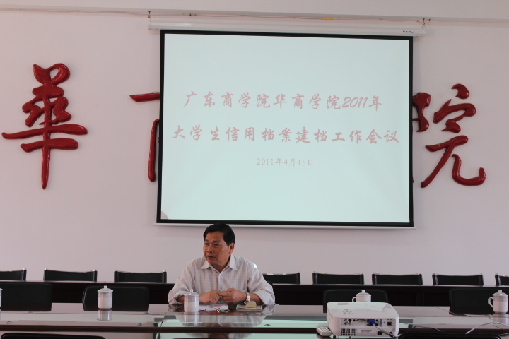 2011年4月15日早上9:00广东商学院华商学院大学生信用档案建设工作领导小组在三楼会议室召开我院大学生信用档案建设工作协调会议。出席本次活动的人员及其办公室成员:邓基泽副院长、张成诗、邱会锋、周庆华、梁玉彩、曾龙威、吴昊、列柏洪、许娜、张铭君、黄国富、彭博娜、吕书勉、吴泽佳、张志强、张璐、罗宋、徐文哲、段晓聪、刘苗、廖倩君、谢文辉。