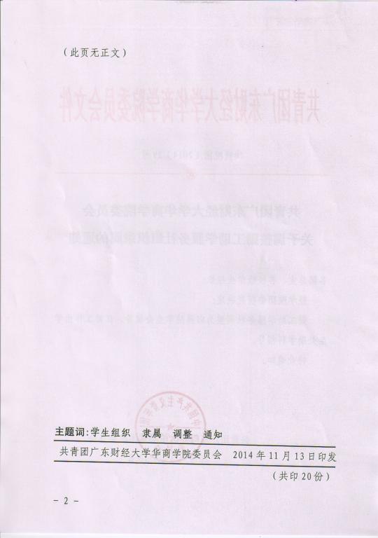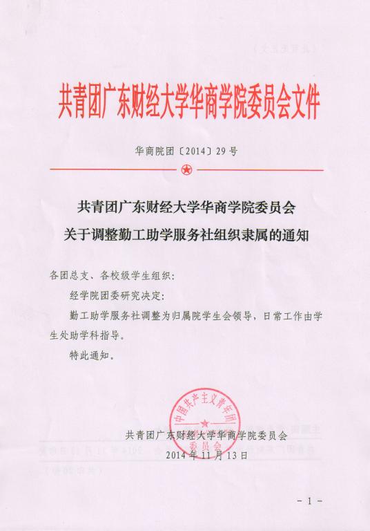 共青团广东财经大学华商学院委员会关于调整勤工助学服务社组织录属的通知