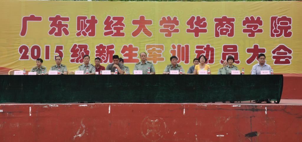 金秋九月,丹桂飘香,那一片军装却愈显生机。2015年9月16日,广东财经大学华商学院2015级新生军训动员大会在学院足球场正式拉开帷幕。参加本次动员大会的领导有军训团政委、学院党委书记苏宁同志,学院副院长邓基泽副研究员,学院副院长王中德副教授,学院副院长郭银华教授、学院副院长马玉珍教授,学院副院长王锦秀同志、军训团团长李雄飞团长学生处刘德平处长以及各职能部门负责人以及各二级院系主任和全体2015级大一学生。
