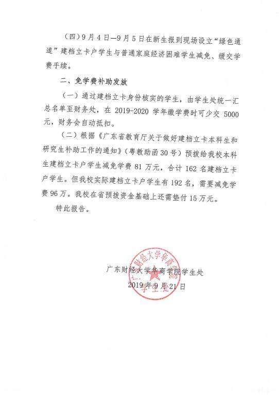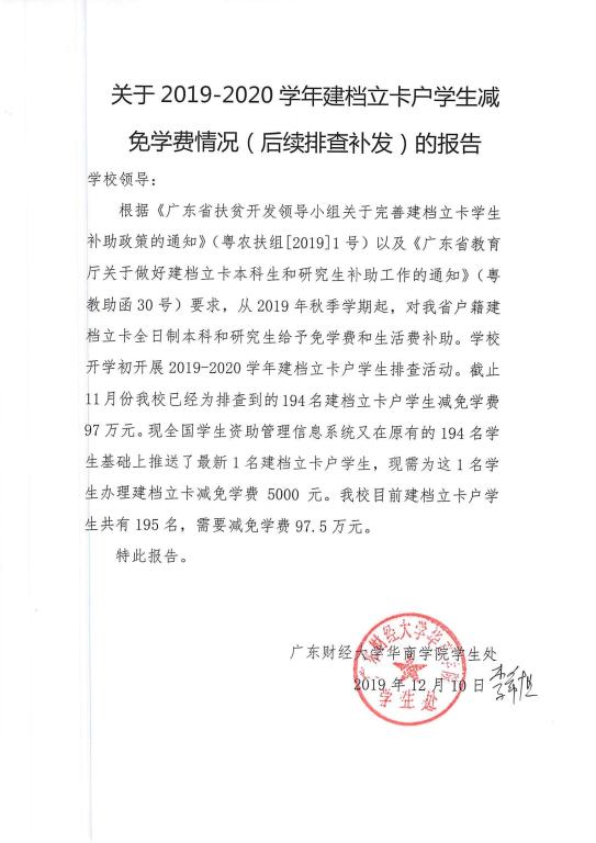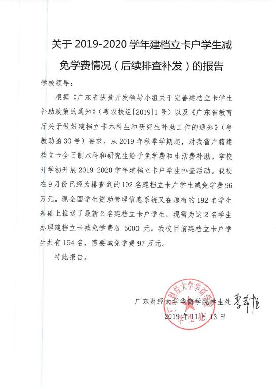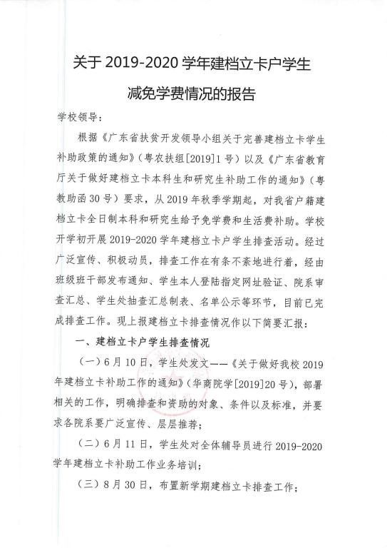 关于2019-2020学年建档立卡户学生减免学费情况的报告