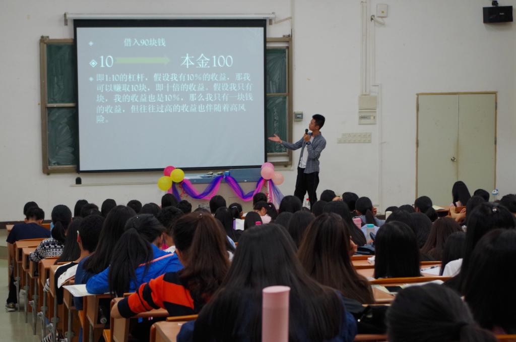 讲座伊始,罗译锴同学耐心地给同学们普及了金融常识,详细讲解了债券、股票、期货与基金。罗译锴同学告诉同学们,金融常识不可小觑,学好便是一份收获。