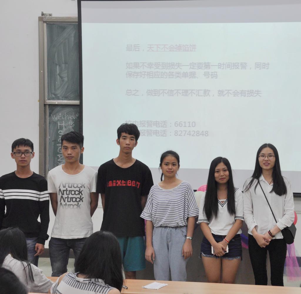 为提高学生的金融防范意识,达到辨识电信诈骗、规避诈骗风险的目的,由学生处指导,院学生会勤工助学服务社主办的以“天上不会掉馅饼”为主题的讲座于20161115日晚在励志楼D408举行,本次讲座主讲人为14级会计17班的胡乃盈同学。