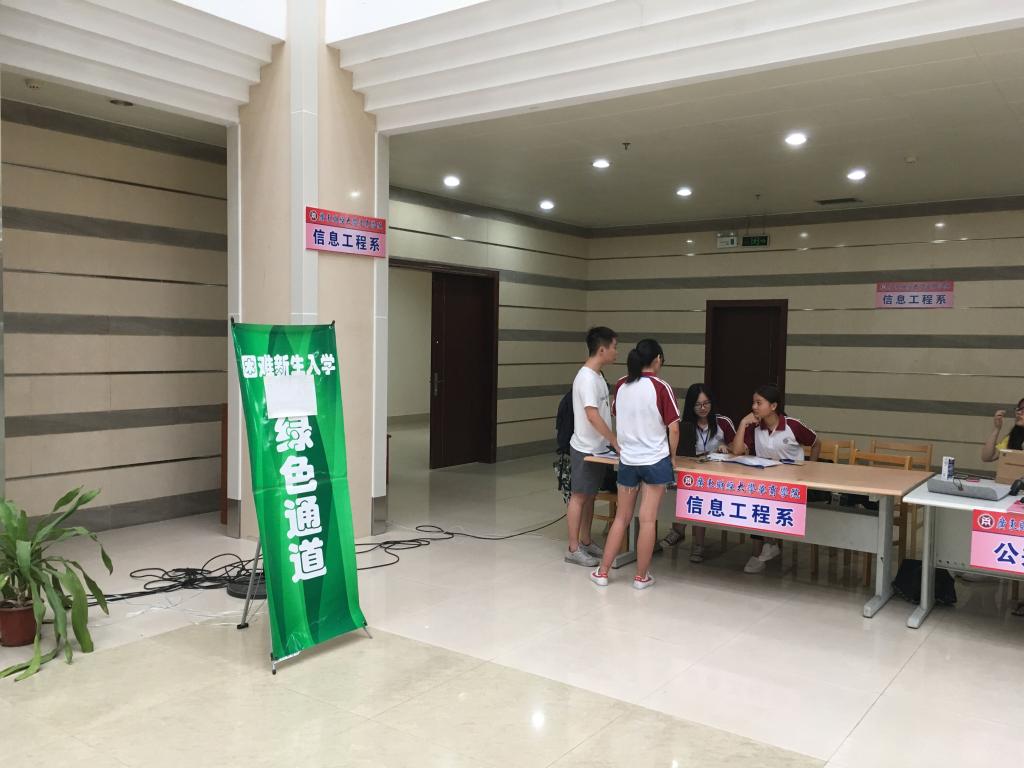 2017年9月5日、6日,我院迎来了又一批新生学子,带着父母的期盼与求学的渴望,新生学子们风尘仆仆的进入了校园,在穿过各志愿服务网点,进入图书馆大厅后,映入眼帘的是四个醒目的大字“绿色通道”。