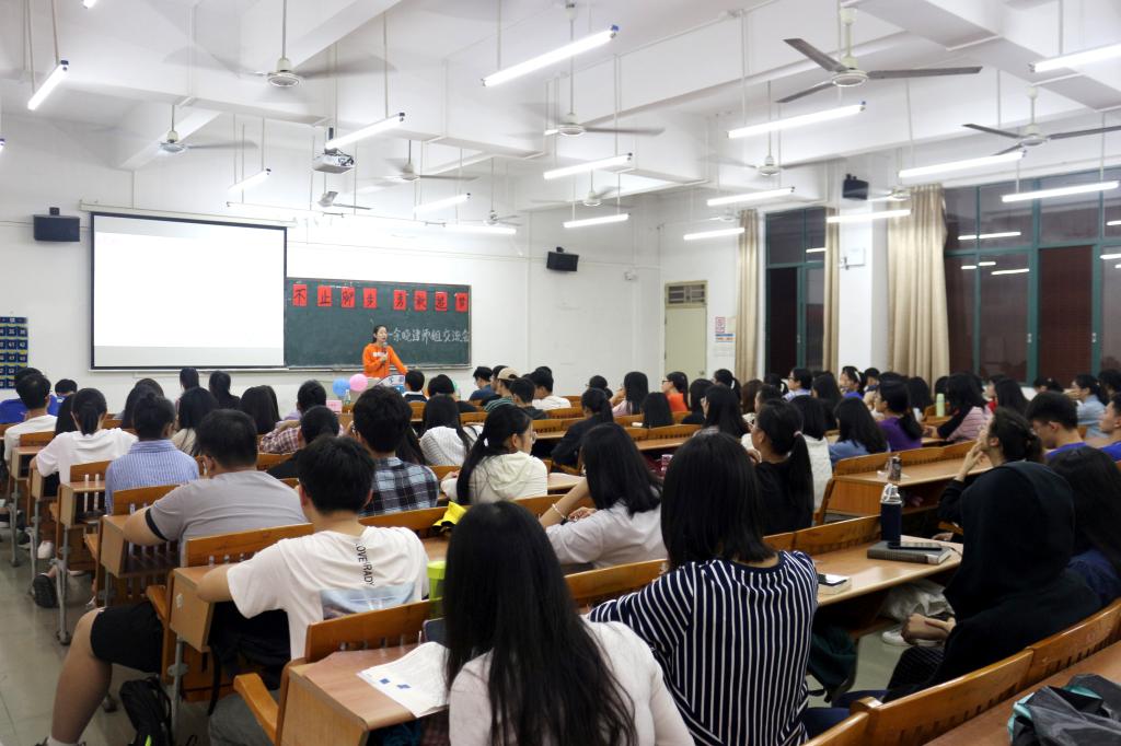 学生处助学管理科2019年4月18日在励志楼C201举办了优秀学子学习交流会,交流会的主题为“不止脚步,勇敢追梦”,本次交流会的主讲人是来自16级会计学3班的余晓津。余晓津是中共预备党员,2017-2018学年国家奖学金获得者,现为华商兼职辅导员,大一新生时是院勤工助学服务社干事。学生处