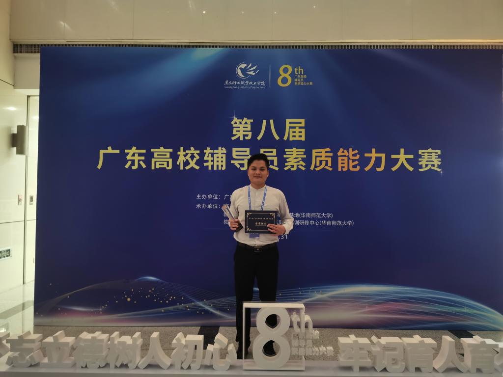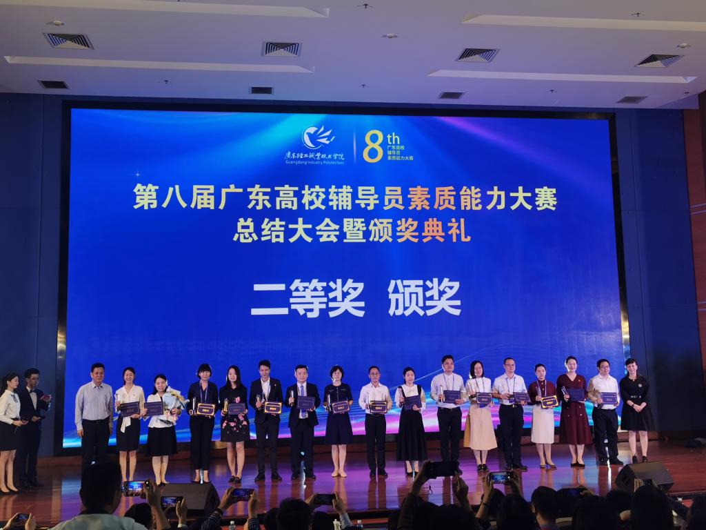 2020年10月31日,由广东省教育厅主办、教育部高校思想政治工作队伍培训研修中心(华南师范大学)、广东轻工职业技术学院共同承办的第八届广东高校辅导员素质能力大赛在广东轻工职业技术学院举行。经过激烈角逐,我校经济管理学院辅导员江庆基老师斩获大赛二等奖。