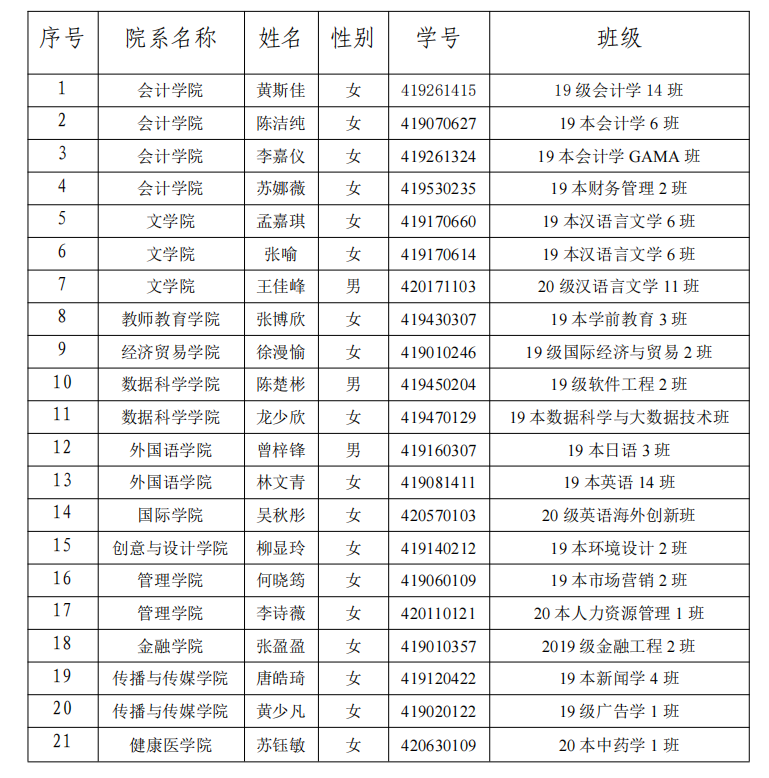 广州华商学院关于2021-2022 学年国家奖学金获奖者名单的公示