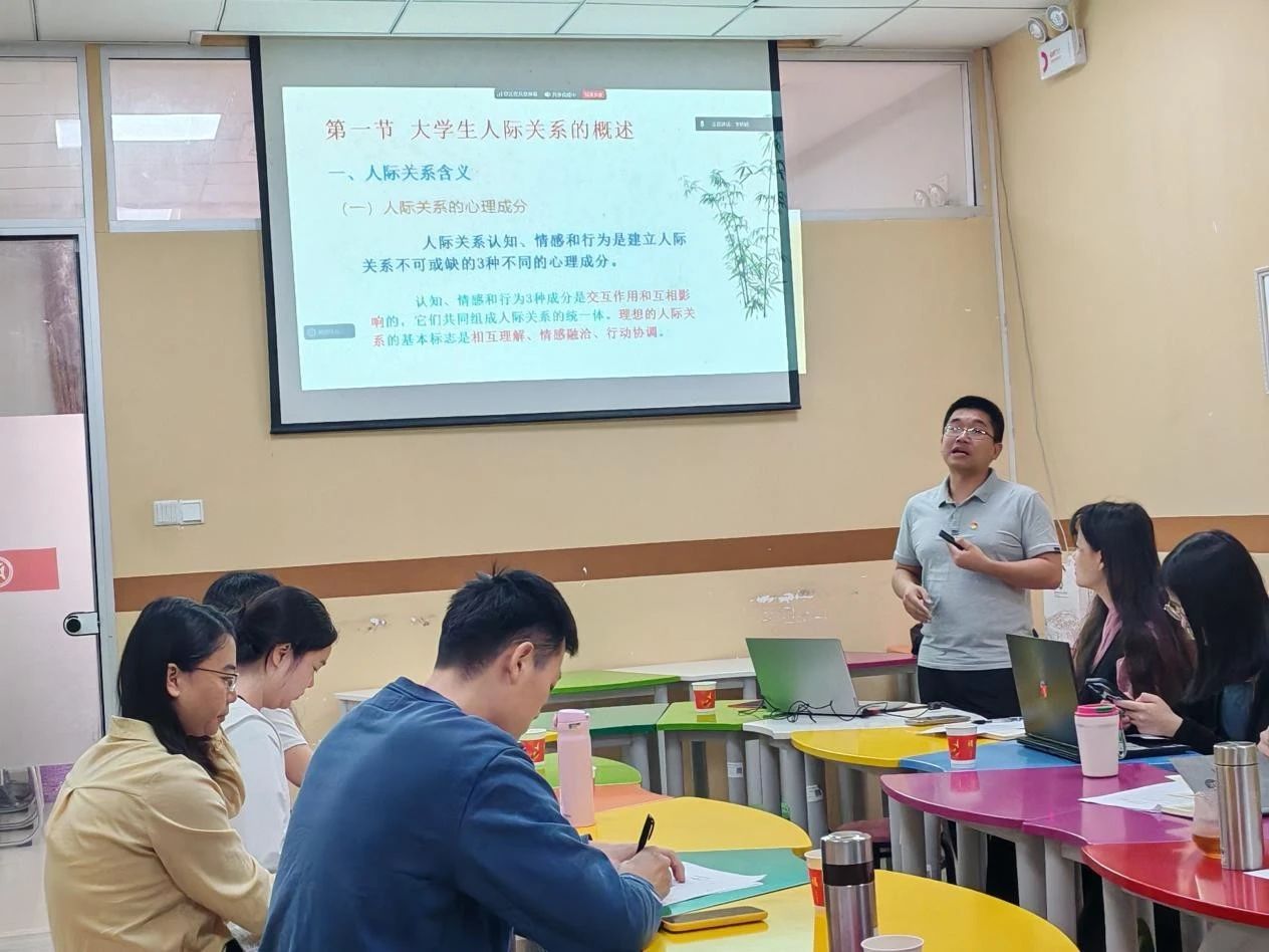接着,任课教师根据学校磨课要求,对《大学生心理健康教育》课程进行20分钟的课程说课和教学演示。在磨课过程中,大学生心理健康教育的7位任课教师尹娅娟、刘广涛、江小倩、林佳丽、李冠恩、王洁、恒景会分别进行了精彩纷呈的课堂展示。教师们以多元创新的教学手段为载体,充分调动学生的课堂参与热情,丰富多样的教学情境,同步融入思政元素,既体现在对学习动机的精准激发,更展现在知识建构与价值引领的有机融合,充分展示了教师们对心理健康教育与思政教育融合的智慧。