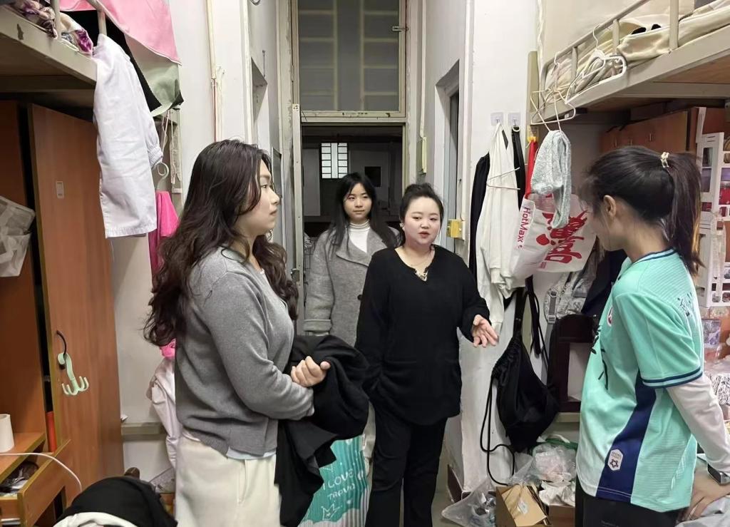 在走访期间,刘苗部长以及王旭明、张小燕老师深入宿舍,全面了解同学们的学习进展与生活状况,仔细聆听同学们对学校和学院的各类意见与建议。针对宿舍存在的卫生问题以及潜在的安全隐患等,提出了具体的改进建议,叮嘱同学们养成良好的生活习惯,以确保宿舍环境的安全与整洁。