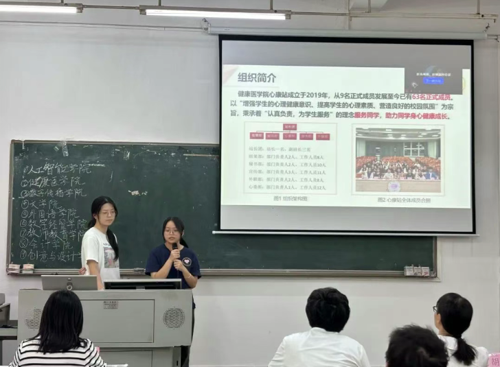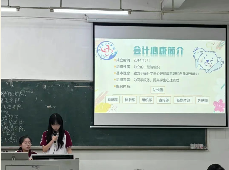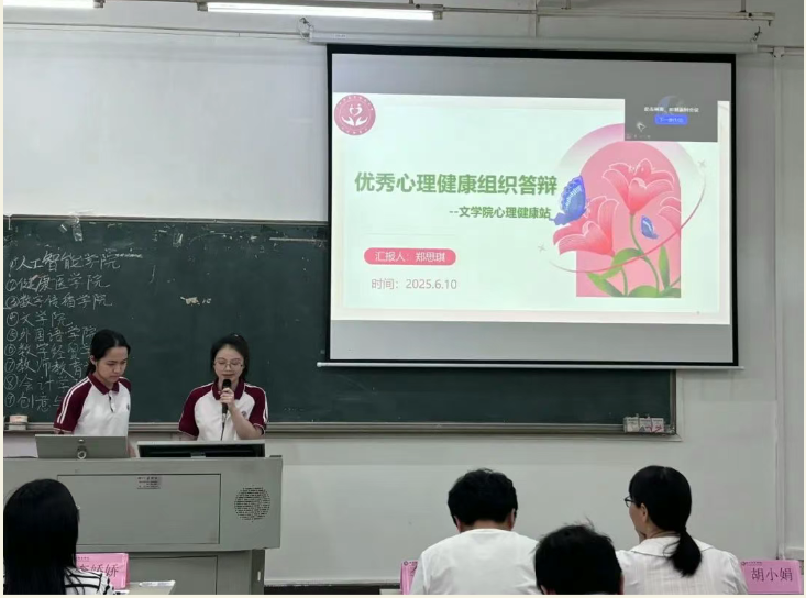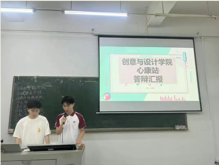 答辩环节精彩纷呈,分为两个部分。首先,各学院心康站代表依次上台,通过5分钟的工作汇报PPT展示,生动地呈现了本学期工作的亮点与成效。他们用详实的数据、生动的案例、精美的图片,将一学年来在心理健康教育、活动组织、学生帮扶等方面的努力与成果一一展现,充分彰显了各学院心康站在心理健康服务领域的独特魅力与专业素养。