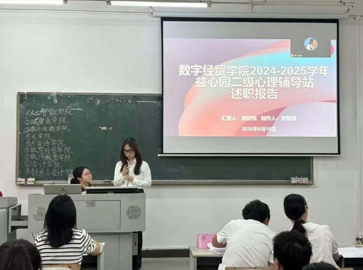 2025年6月10日下午,广州华商学院2024-2025学年优秀二级学院心理健康协会评选答辩会在励志楼A103顺利举行。心康中心李湘主任、吴连宁老师、李娇娇老师、陈梅老师、胡小娟老师担任评委,各二级学院心康协会联络员及学生代表参与了本次会议。