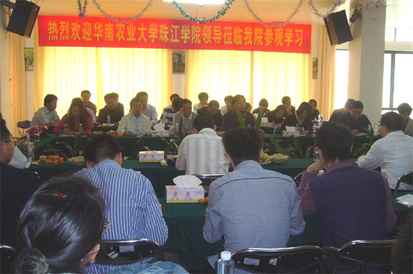2009年2月19日,华南农业大学珠江学院学生工作队伍在梁深洪校长和马骏书记的带领下,莅临我院参观指导,并在图书馆多功能厅与我院学工队伍进行了热烈交流。我院院长徐印州院长、黄虹书记、丘兆福副院长、邓基泽副院长等院领导和学生处干部、学生工作助理参加了交流会。两校领导和学生工作队伍就当前学生工作环境、学生工作成功经验、民办高校党务工作、办学定位和学校建设等方面进行了广泛的热烈交流。