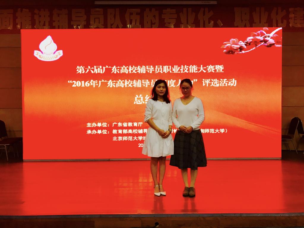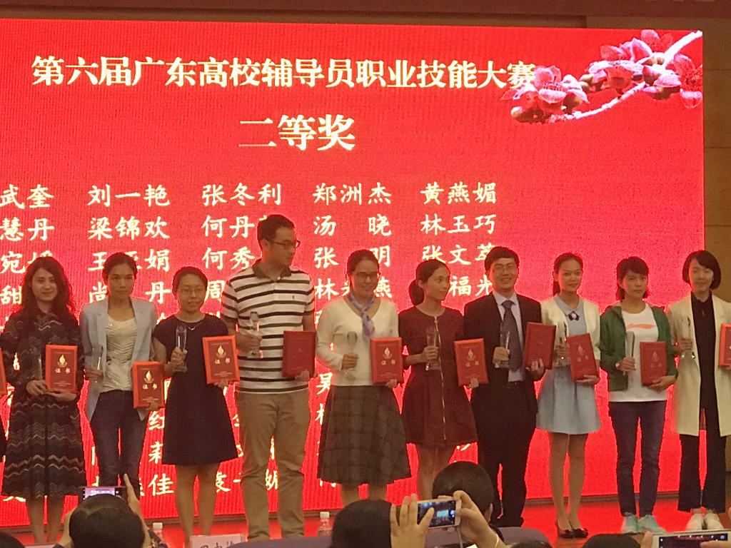 4月8日至10日,第六届广东省高校辅导员职业能力大赛在北京师范大学珠海分校举行,我校经济管理学院经济与金融系辅导员刘甜玲、文学院外语系辅导员燕宇代表我校参赛,经过初赛、决赛的激烈角逐,刘甜玲荣获二等奖、燕宇获得三等奖佳绩。