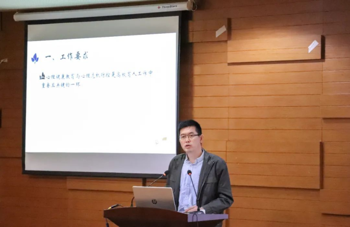 第二部分是吴连宁老师讲述心理普查回访工作。吴连宁老师讲述了4个要点:首先是工作要求,阐述了心理健康教育与心理危机防控是高校育人工作中重要且关键的一环;然后简述了普测筛查的流程和方法;紧接着详细地讲述了访谈的注意事项;最后指导各辅导员完成访谈。