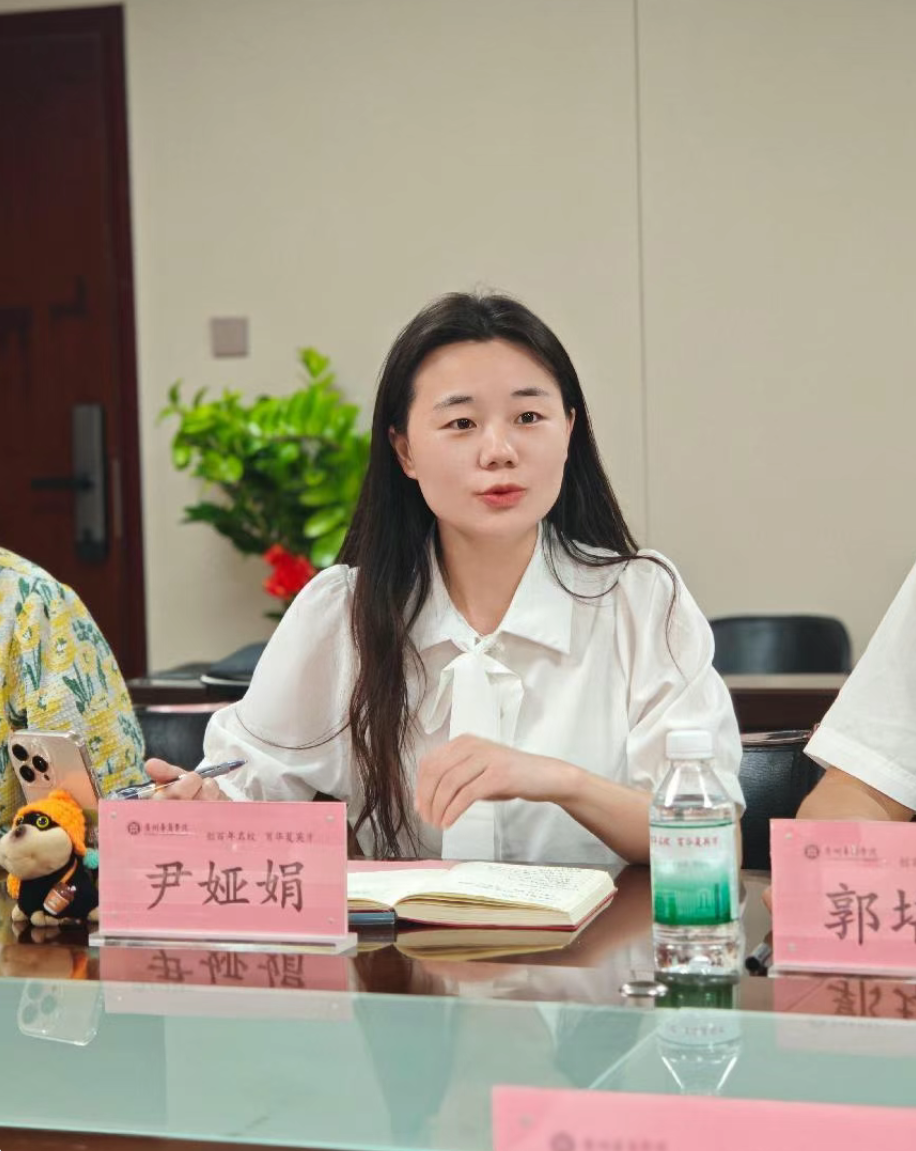 在热烈的氛围中,会议进入了高潮——颁发客座顾问聘书。许娜副校长亲自为董锦红老师颁发聘书,这不仅是对董老师专业能力与丰富经验的高度认可,更是学校重视辅导员队伍建设、推动工作室高质量发展的有力举措。一纸聘书,承载着责任与期待,相信在董老师的持续指导下,我校辅导员工作室定能绽放更多光彩。