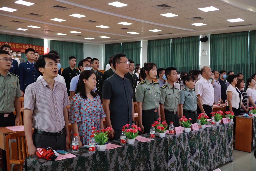 退伍学生献上大合唱《有我在》,他们饱满的精神风貌感染了现场所有人,铿锵有力的歌声唱响了时代的最强音。