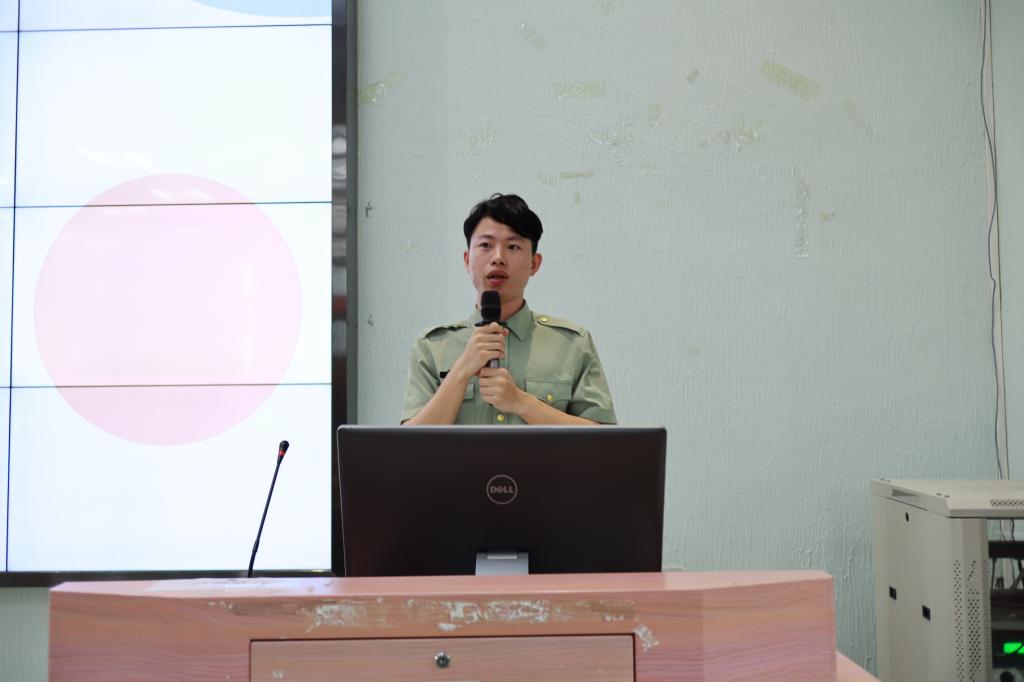 活动第二部分由21届毕业生黄煜峰师兄与我们分享了他入伍的初衷、经历、体会等方面,并提醒有入伍意向的同学体检前要保持良好心态,入伍后在部队里要把握好机会,无论是在部队还是学校,我们应保持自律意识,充实自己、提升自己。