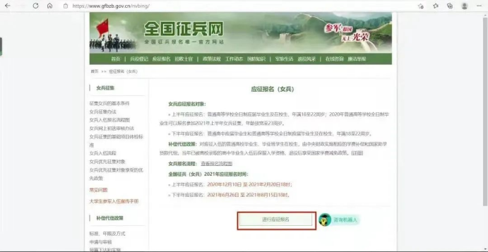 1.打开全国征兵网首页,点击“应征报名”