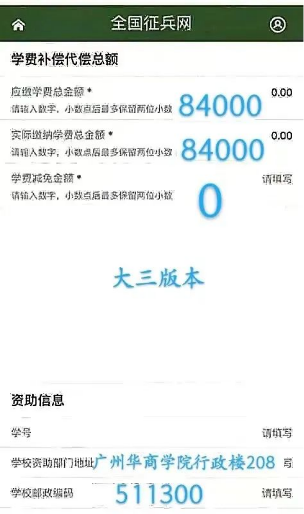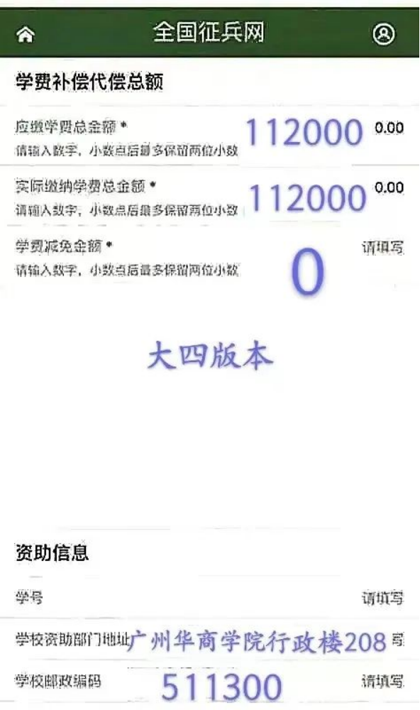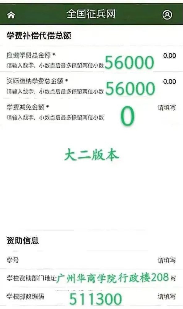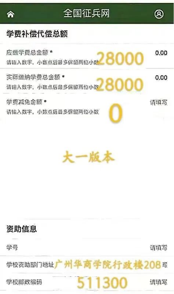注意事项:如选择在学校入伍的应征地务必选择“广州华商学院”