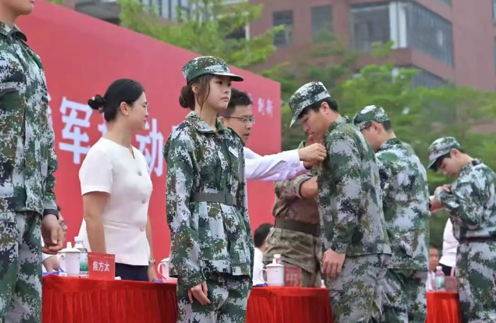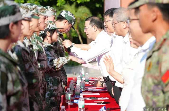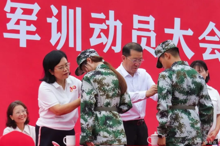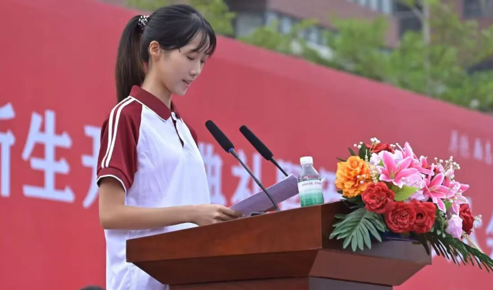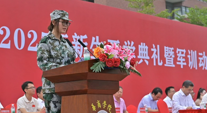 老生代表谢书钿分享在校经历,感恩学校培养,并激励新生勇于探索、不断突破;新生代表谢文均表达了对大学生活的期待与完成军训的决心。