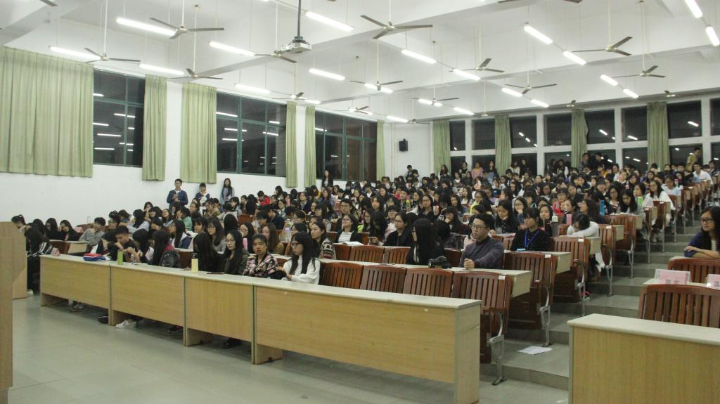 本次讲座的主题为“勿忘初心,方得始终”,其主讲人是曾获得“英语新闻点评大赛三等奖”、连续两年的“校优秀生二等奖”、“2016年校优秀生一等奖”及“2016年的国家奖学金”来自13级本英语1班游翠婷师姐。本次讲座吸引了不少同学前来听讲,现场气氛热烈。