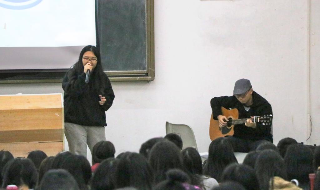 讲座由END乐队带来的一首“我好想你”暖场表演正式拉开序幕。接着,游翠婷师姐通过一段英文短片介绍了自己如何“Remember where you started. Be yourself and be heart”——勿忘初心,方得始终。