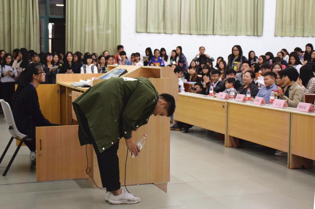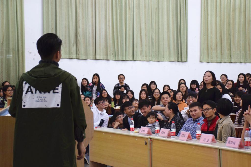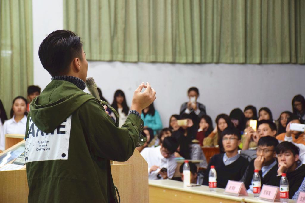 在讲座接近尾声时,师兄为同学们表演诗歌朗诵——《相信未来》。他声情并茂的朗诵得到了在场观众热烈的掌声。最后,观众们都积极地向师兄提出自己的疑问,师兄一一耐心解答。