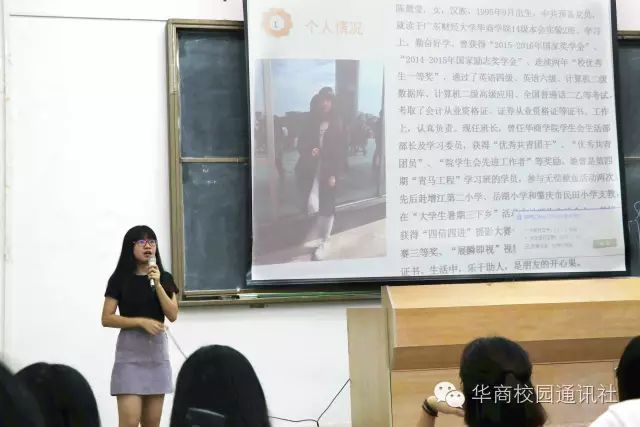 本次讲座主题为“坚持才有可能看到希望,不是看到希望才去坚持”,其主讲人是来自14级本会计实验2班曾荣获“2014 - 2015学年励志奖学金”、“2015 - 2016学年国家奖学金”和连续两年“校优秀生一等奖”的陈慧莹师姐。