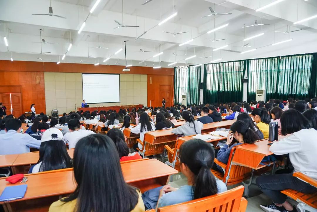 2018年4月10日下午14:30,由学生处主办的“关于大学生礼仪和交往艺术”2018文明纪律教育月讲座在励志楼C208如期举行。本场讲座由我院国际学院余惠芬院长担任主讲,出席此次讲座的嘉宾有华商学院学生处李希恒处长,学生处熊桂桃副处长,国际交流合作处王文忠处长,学生处老师、各院系辅导员及各班级班干部代表。主持人介绍完毕后,在一阵热烈的掌声中,余惠芬教授上台开始了此次演讲。