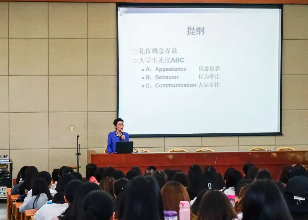 她将这次讲座关于礼仪方面的内容划分为ABC三个部分,分别是仪容仪表,行为举止和人际交往这三个部分,并举了几个真实的例子体现礼仪在我们生活中的的重要性,而后通过阐释了“大学生礼仪”的内涵,引出此次讲座的主题“大学生和交往艺术”。