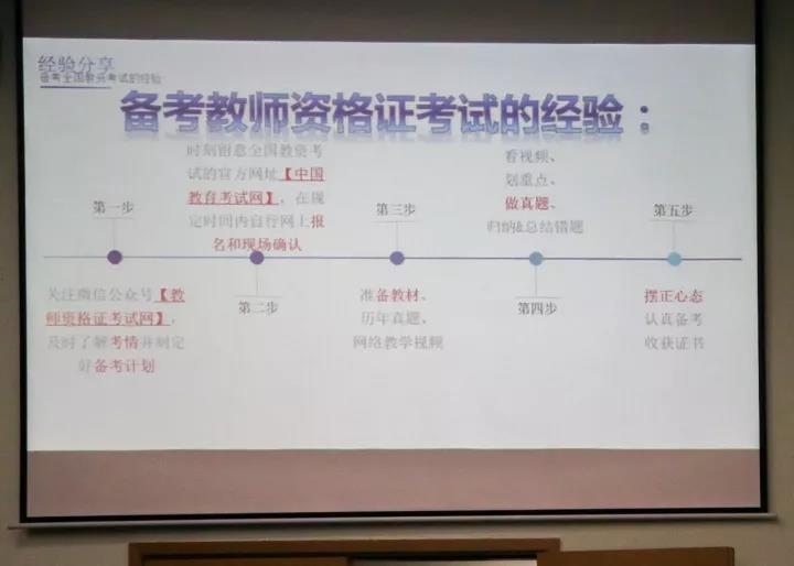 然后王楚敏师姐分享了自己在学习过程中的经验并提出了四点建议:第一树立目标,做好规划;第二学会高瞻远瞩;第三要有竞争意识;第四是同学们最为关心的关于考教师资格证的经验,为我们带来了满满实用的干货。除了学习,她还热衷于参加公益活动,做过义教老师,参加过许多志愿者活动,她始终相信“赠人玫瑰,手有余香”。