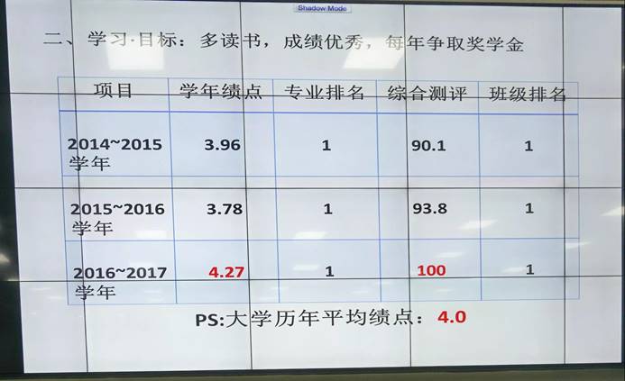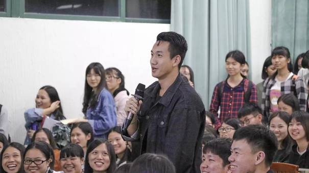 庄惠成师兄随后介绍了自己的大学经历,谈到社会实践,期间包括三下乡活动,志愿者支教活动,青马班的培训等。谈到学习,他也把自己的目标和行动十分完美地运用到其中,大一到大三平均绩点高达4.0的优异成绩成为同学们眼中的学霸,精彩的社团活动等都让同学们惊羡和佩服。