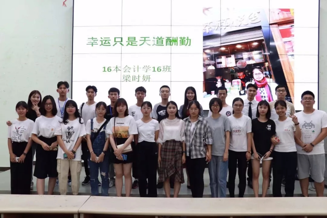本次的讲座主题是“幸运只是天道酬勤”。主讲人梁时妍师姐是广东财经大学华商学院16本会计学16班的学生。她作为中共预备党员,连续两年获得国家励志奖学金,并曾获校优秀生一等奖、校优秀生二等奖、优秀共青团干部等奖项。
