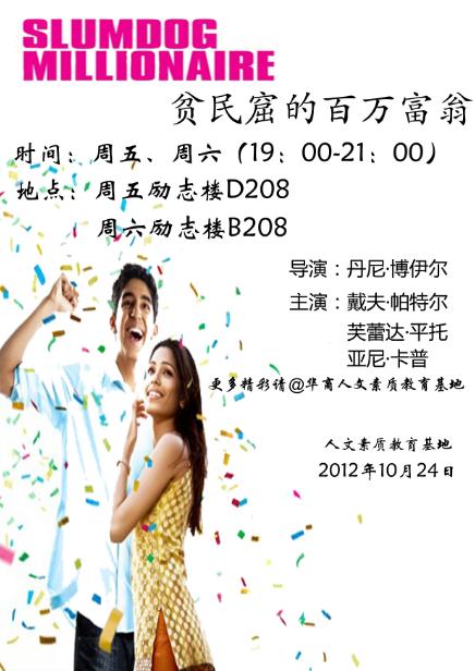 2012年10月26、27日上映《当幸福来敲门》和《贫民窟的百万富翁》