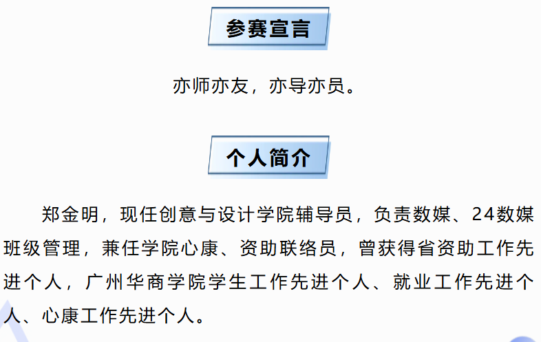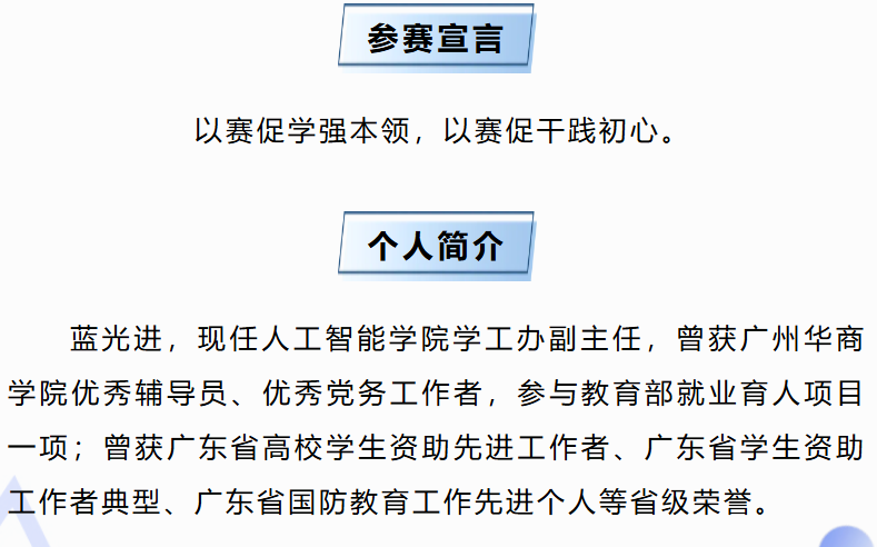 为深入实施立德树人根本任务,深化新时代高校辅导员队伍建设改革,紧扣以赛促学强本领、以赛促建聚合力为导向,持续夯实我校辅导员的理论功底、锤炼育人能力、精进专业水平,着力锻造一支政治过硬、作风优良、业务精湛的学生工作骨干队伍,全面提升学校思想政治教育工作质量,广州华商学院将于2025年12月18日举办“华商二十正青春,辅路引航铸匠心”第八届辅导员素质能力大赛。