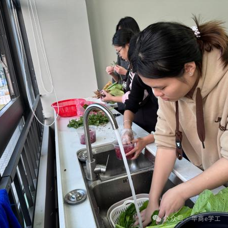 从劳动基地的青翠菜园到共享厨房的烟火升腾,12月3日,广州华商学院肇庆校区(第二食堂)书院三楼共享厨房热闹非凡,“耕耘知食艰,烹饪享成果”校园劳动美食活动在此圆满落幕!副校长许娜、学生处处长黄国富与学院学工主任来到同学们中间,亲切融入备餐烹饪的热烈氛围。师生齐聚,以劳为乐,以食会友,同学们在协作中解锁烹饪技能,老师们在分享中品味劳动甘甜,共同成就了这场饱含心意与温暖的校园记忆。
