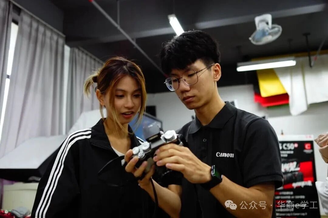 杨景豪老师则聚焦于摄影与动态影像的实战技巧,从构图逻辑到运镜思路,干货满满。随后,佳能品牌机构提供的多款最新相机设备登场,技术团队与杨老师一同进行一对一实操指导,让同学们第一时间熟悉设备,掌握新功能。