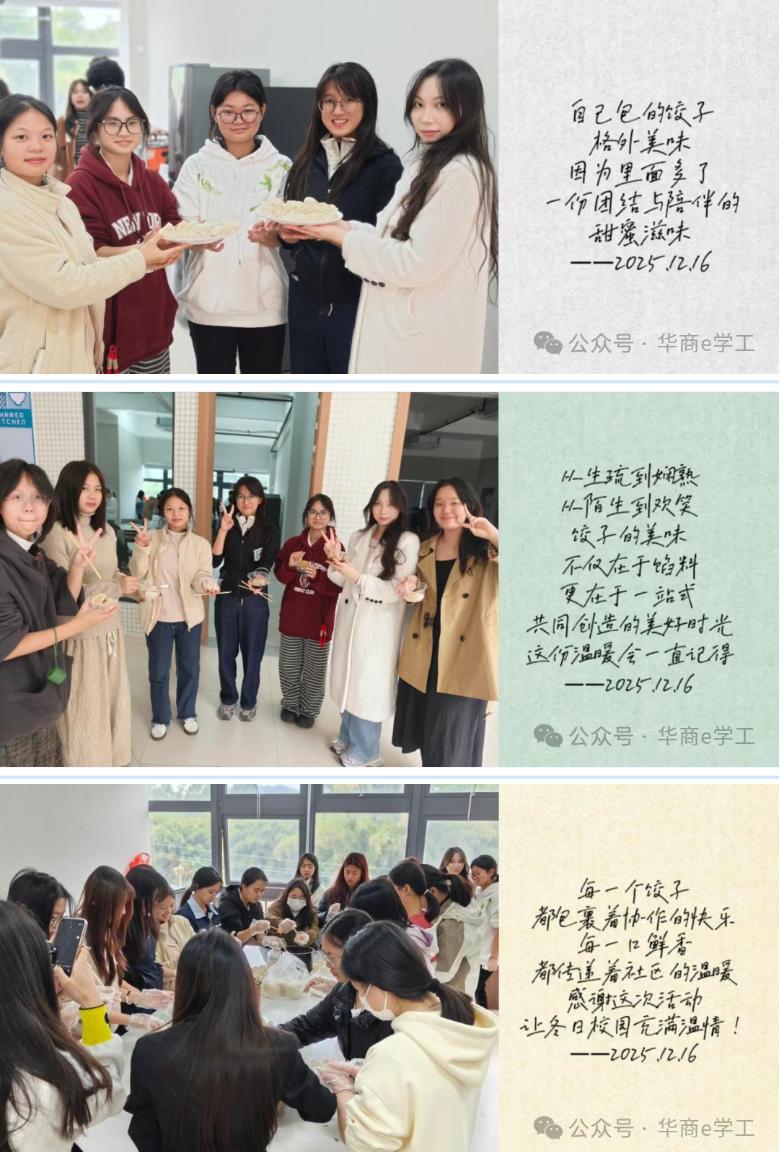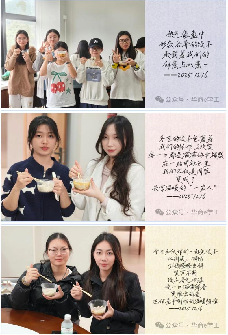 此次“情暖冬至、饺聚华商”活动,不仅让同学们在实践中感受了传统节日的魅力,传承了中华优秀传统文化,更搭建了交流互动的平台,增进了同学之间、师生之间的情谊,让留校学子在校园中感受到了浓浓的关怀与归属感。